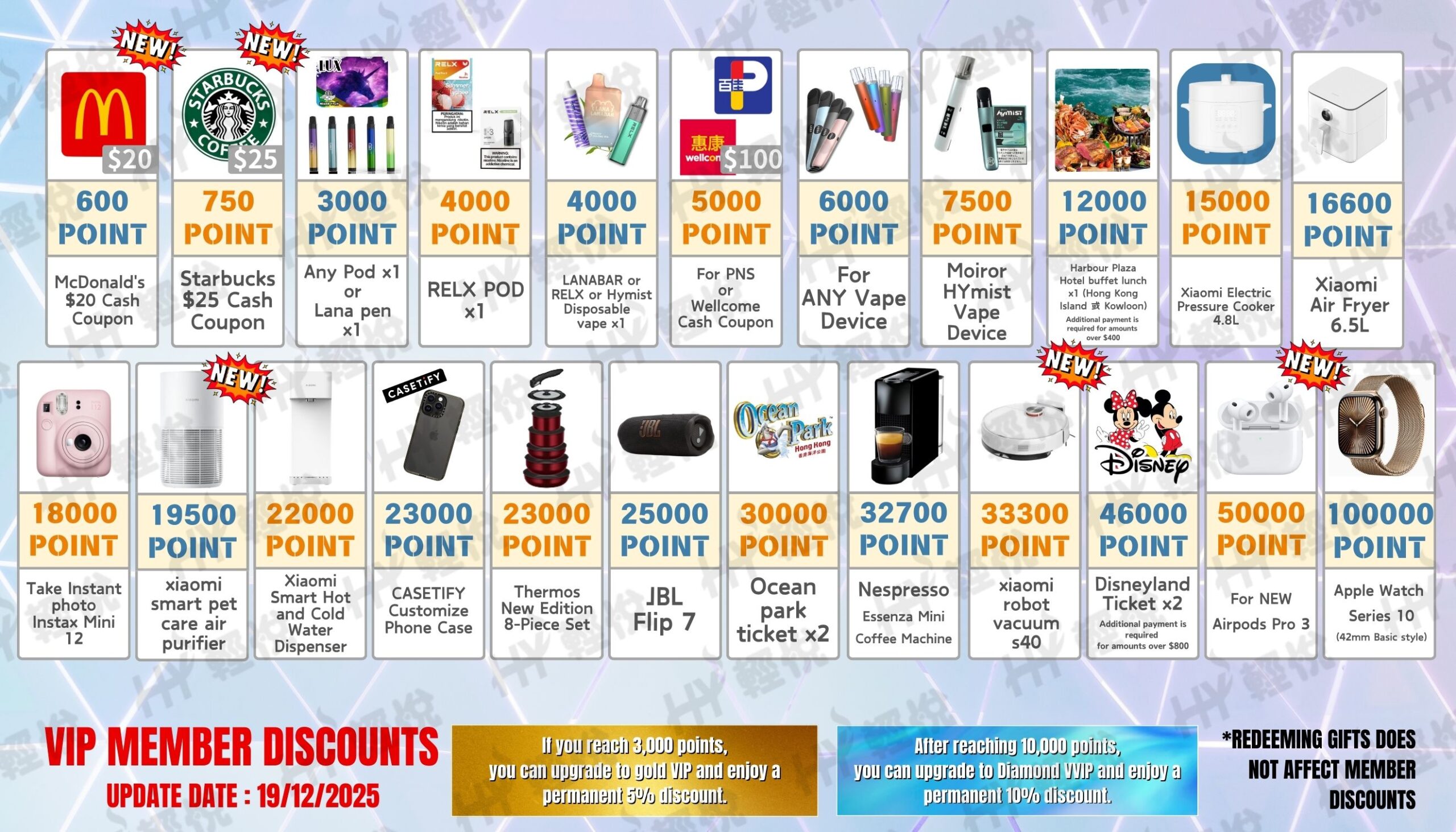 Join HY VAPE Member, your most trustworthy electronic cigarette store in Hong Kong. When you join us, you will become a member of us and enjoy the most distinguished treatment. You can also be the first to experience popular new products, discounts and special gifts.